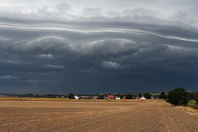 Shelf cloud na ranní squall line 22.8.2012 7:22 - Horoušany ve Středočeském kraji, autor: Robin Duspara