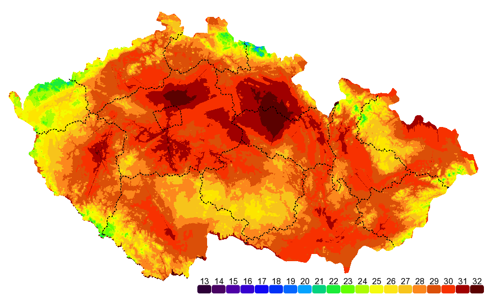 | Praha - Karlov | 31.2 °C | 17.1 °C | - | 3.8 mm | 0 cm | 10.5 hod |