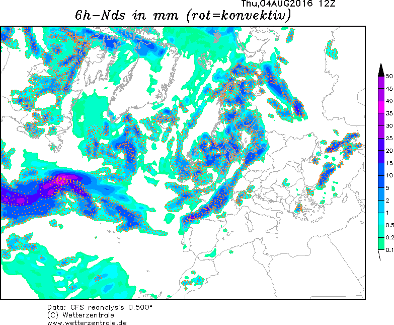 Rozsáhlý archiv meteorologických map pro celou Evropu se nachází také na stránkách Wetterzentrale.de. Přímé odkazy na jednotlivé mapy naleznete níže.