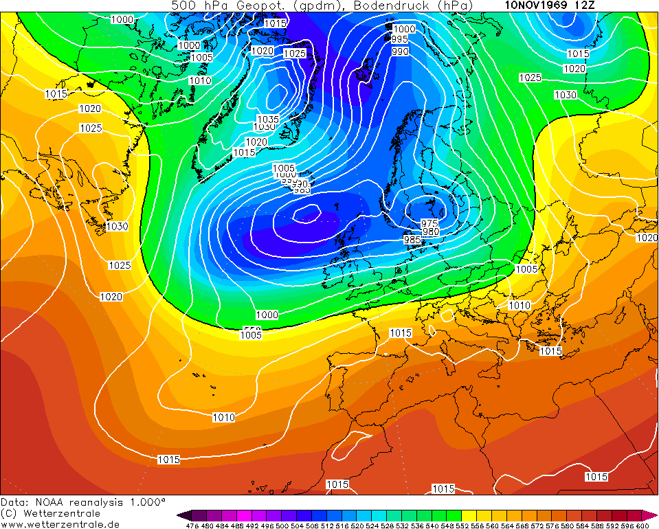 Teplota v 500 hPa - teplota v hladině 500 hPa včetně rozmístění tlakových útvarů