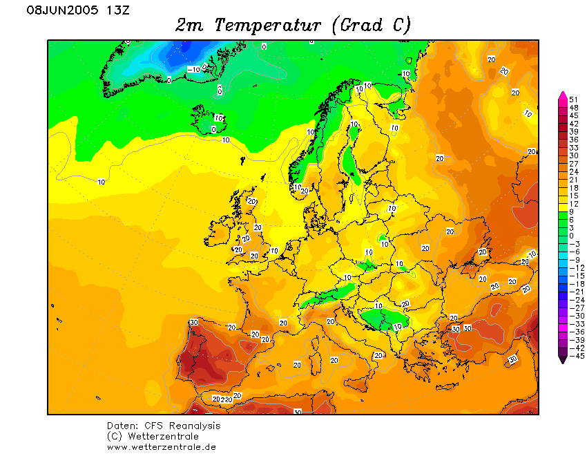 Rozsáhlý archiv meteorologických map pro celou Evropu se nachází také na stránkách Wetterzentrale.de. Přímé odkazy na jednotlivé mapy naleznete níže.