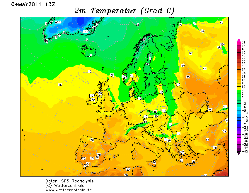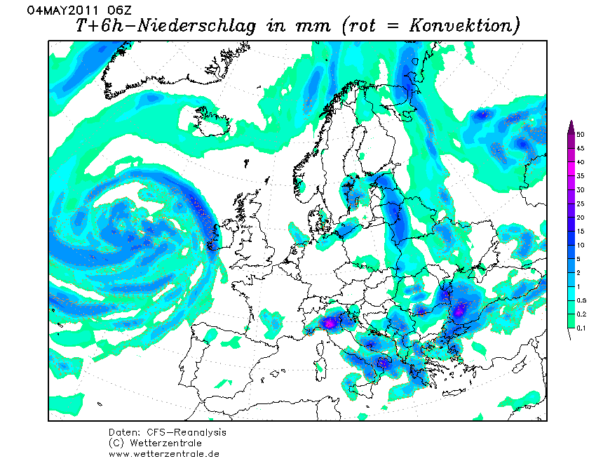 Rozsáhlý archiv meteorologických map pro celou Evropu se nachází také na stránkách Wetterzentrale.de. Přímé odkazy na jednotlivé mapy naleznete níže.