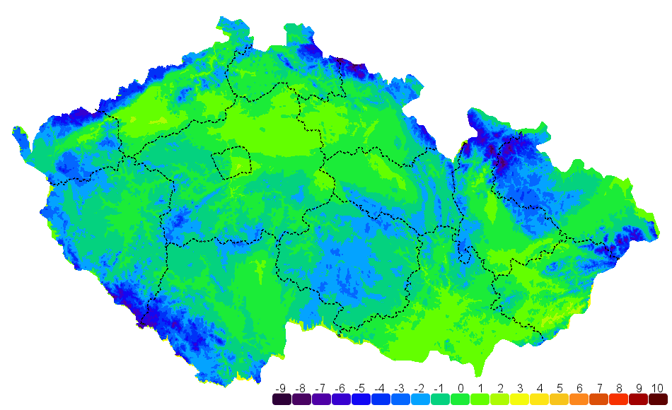 Teplota v 850 hPa - teplota v hladině 850 hPa (přibližně 1500 m nad zemí)