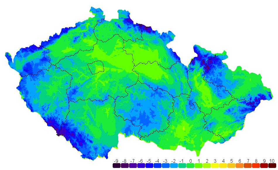 | Kuchařovice | 0.9 °C | -1.7 °C | - | 1.6 mm | 9 cm | 0 hod |