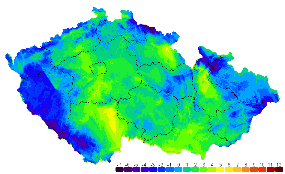 | Tišnov | 7.3 °C | -3.6 °C | - | 0 mm | 6 cm | - |