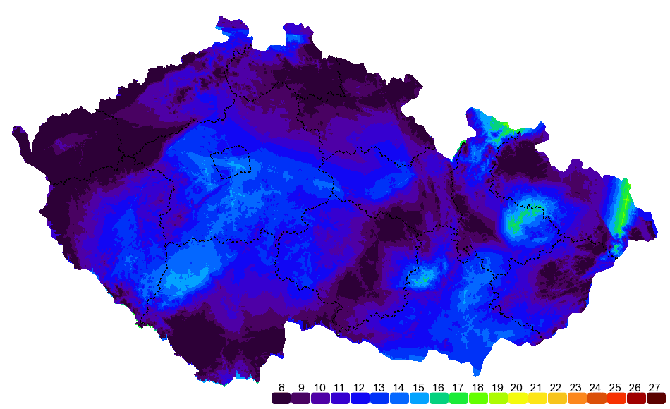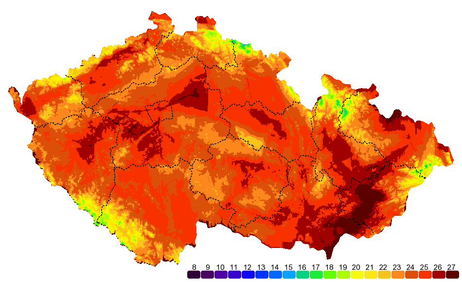 | Bystřice pod Hostýnem | 26.5 °C | 6.8 °C | - | 0 mm | 0 cm | - |