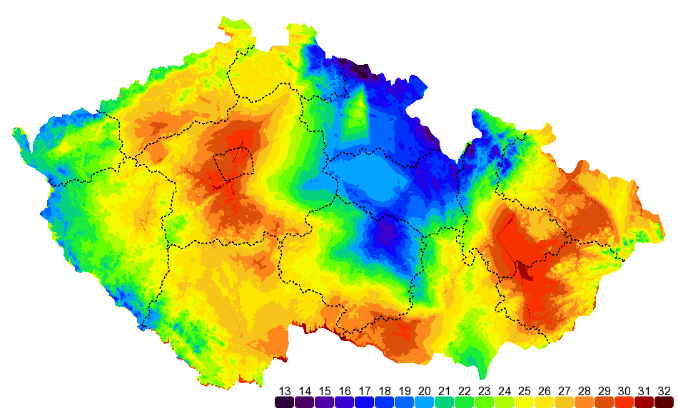 | Lanškroun | 27 °C | 15.1 °C | - | 38.8 mm | 1013 hPa | 95 % |