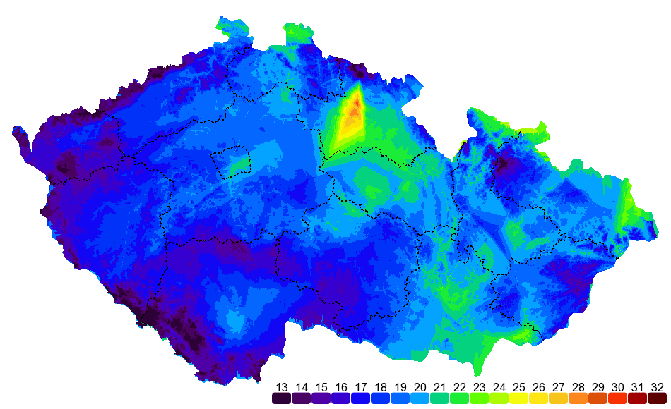 | Dolní Morava | 21.6 °C | 12.4 °C | - | 12.3 mm | - | 1.3 hod |