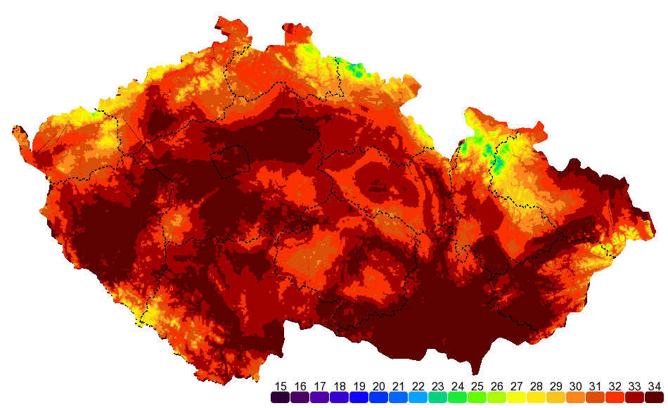 | Ktiš | 32 °C | 12.9 °C | - | 10.2 mm | 0 cm | - |