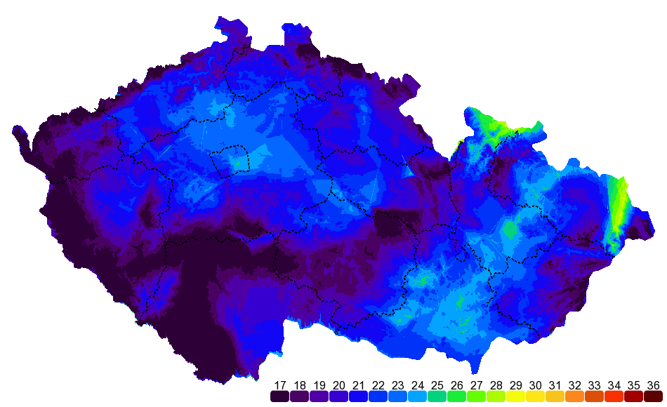 | Žerotín | 36.9 °C | 21.7 °C | - | 0 mm | 1018 hPa | 87 % |