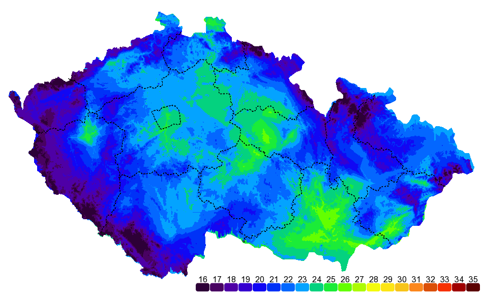 | Černá v Pošumaví | 29.5 °C | 13.6 °C | - | 17 mm | 0 cm | 12.1 hod |