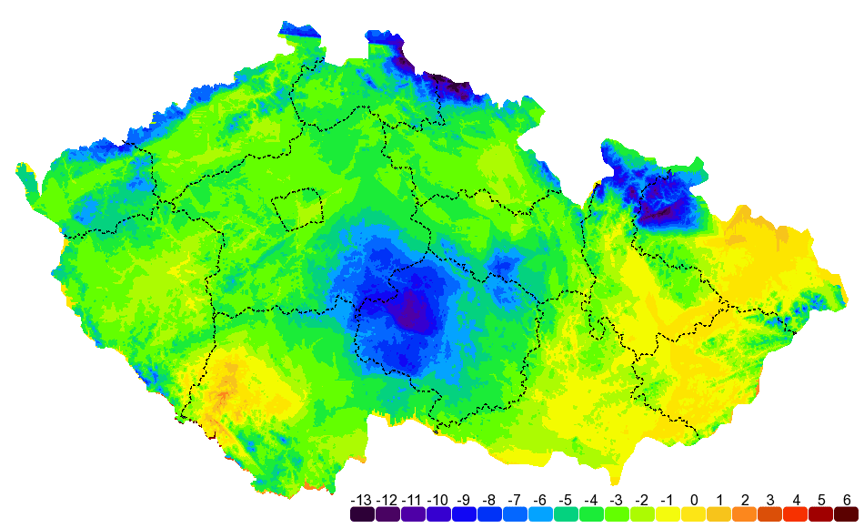 | Dolní Morava | 0.9 °C | -6.9 °C | - | 2.4 mm | - | 3.8 hod |