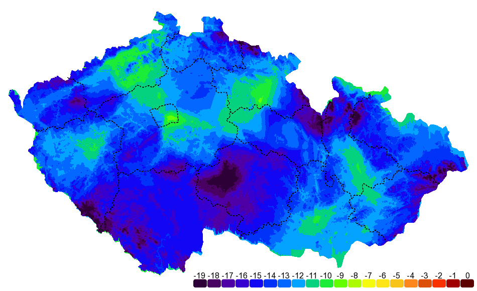 | Ostrava, Hrabová | -7.9 °C | -13.9 °C | - | - | - | - |