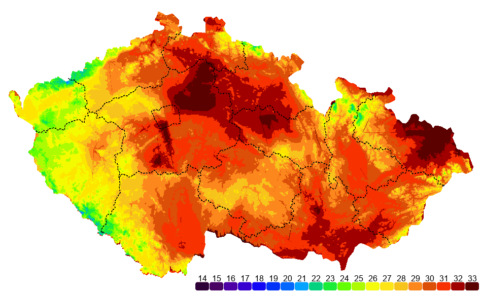 | Trhové Sviny | 31.6 °C | 16.2 °C | - | - | 1009 hPa | 95 % |