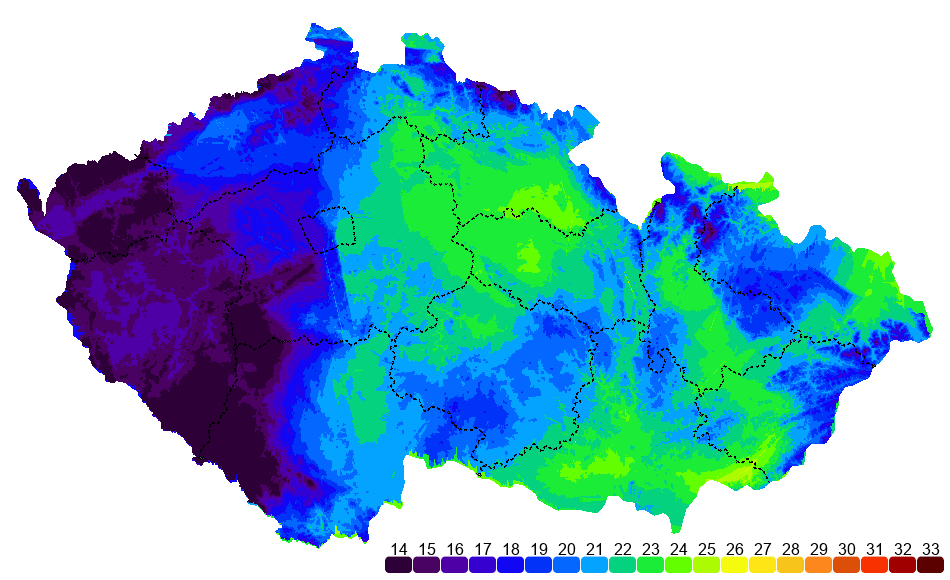 | Mirovice | 31.3 °C | 12.8 °C | - | - | 1010 hPa | 95 % |