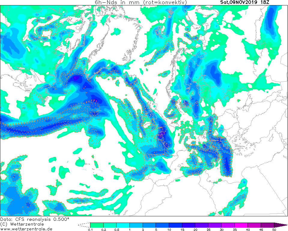 Rozsáhlý archiv meteorologických map pro celou Evropu se nachází také na stránkách Wetterzentrale.de. Přímé odkazy na jednotlivé mapy naleznete níže.