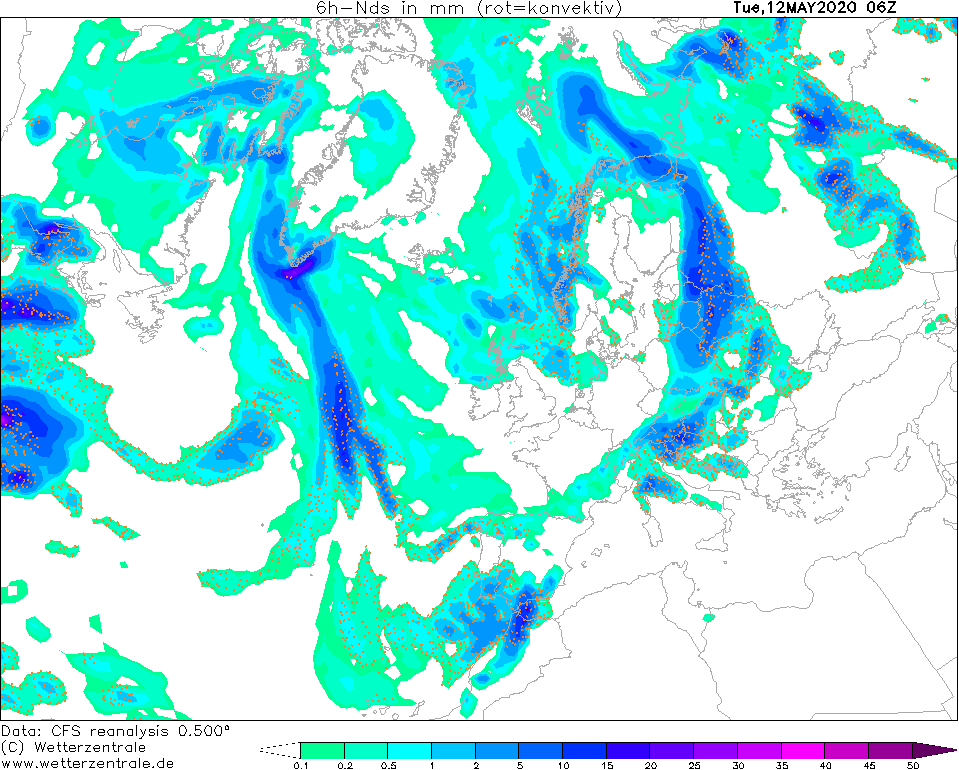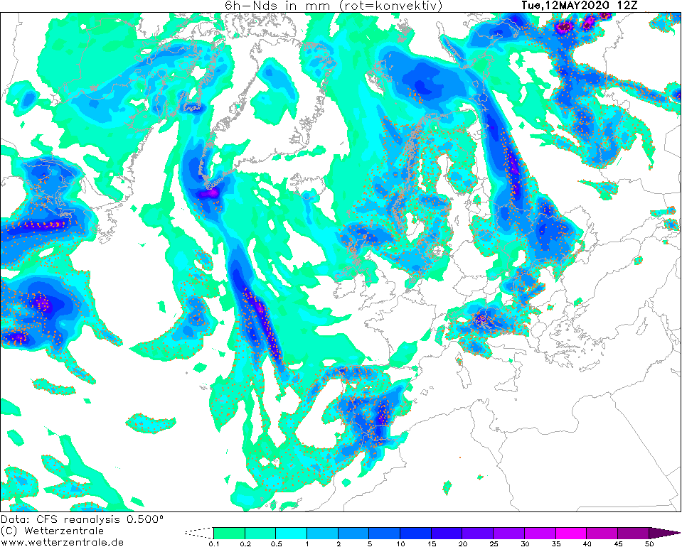 Rozsáhlý archiv meteorologických map pro celou Evropu se nachází také na stránkách Wetterzentrale.de. Přímé odkazy na jednotlivé mapy naleznete níže.