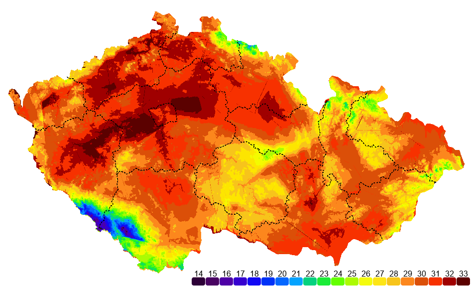 | Praha - Vinohrady | 32.8 °C | 18.6 °C | - | 0 mm | 0 cm | 12.5 hod |