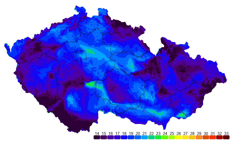 | Praha - Karlov | 33.5 °C | 17.8 °C | - | 0 mm | 0 cm | 12.4 hod |