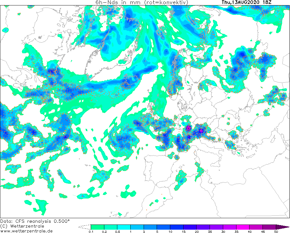 Rozsáhlý archiv meteorologických map pro celou Evropu se nachází také na stránkách Wetterzentrale.de. Přímé odkazy na jednotlivé mapy naleznete níže.