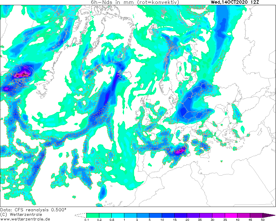 Rozsáhlý archiv meteorologických map pro celou Evropu se nachází také na stránkách Wetterzentrale.de. Přímé odkazy na jednotlivé mapy naleznete níže.