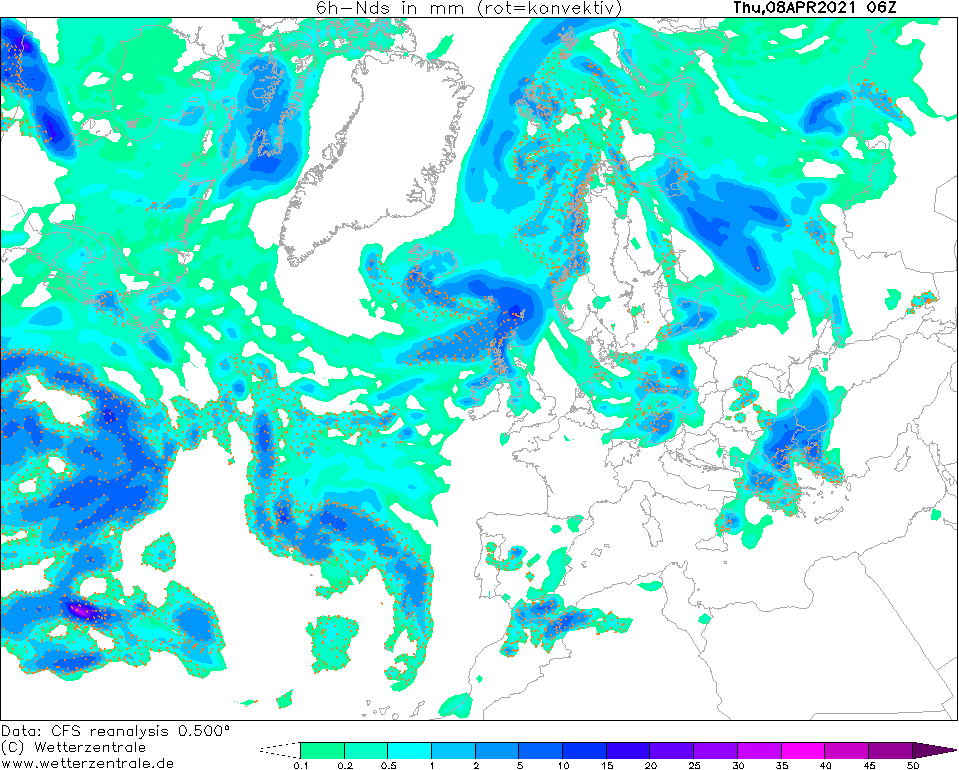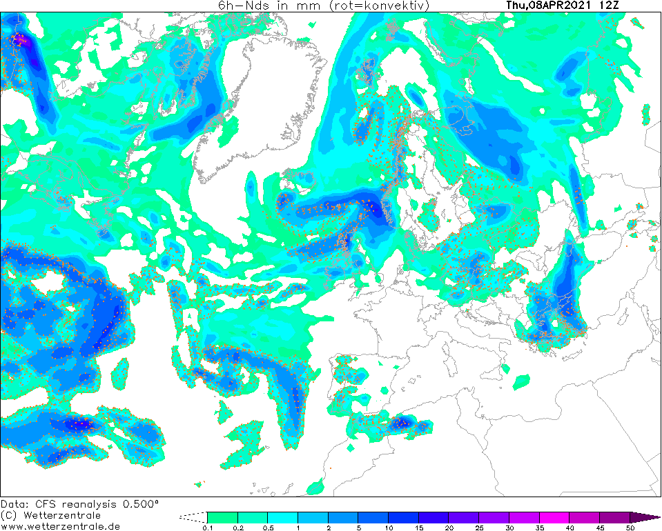 Rozsáhlý archiv meteorologických map pro celou Evropu se nachází také na stránkách Wetterzentrale.de. Přímé odkazy na jednotlivé mapy naleznete níže.