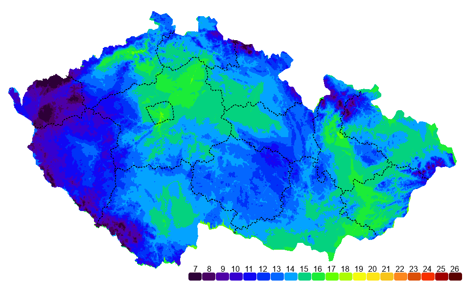 | Moravské Budějovice | 17.9 °C | 12.5 °C | - | 56.5 mm | 0 cm | - |