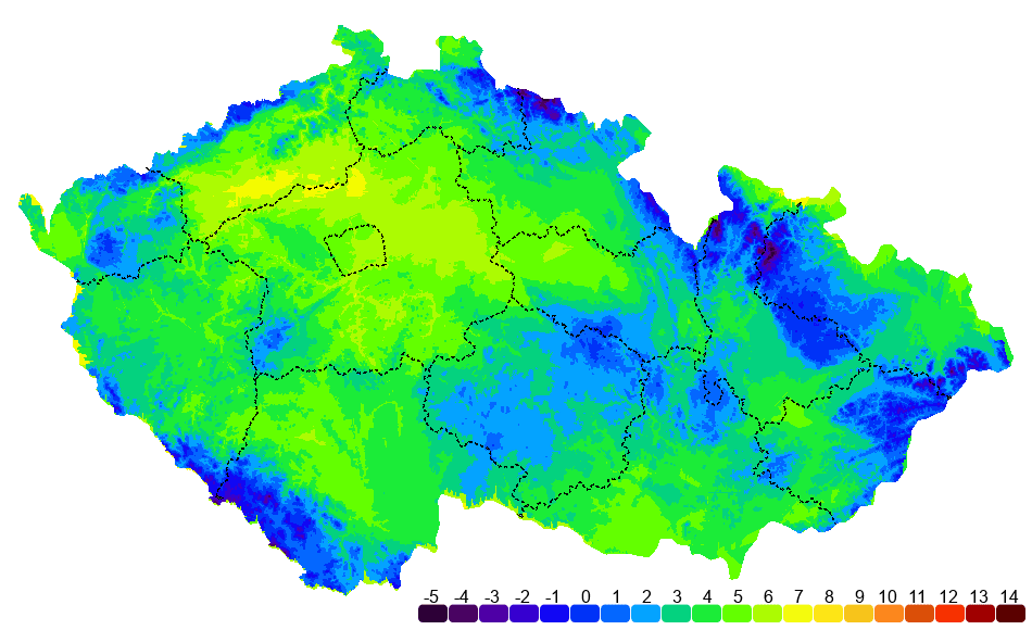 | Sněžka | -2.2 °C | -5.9 °C | - | - | - | - |