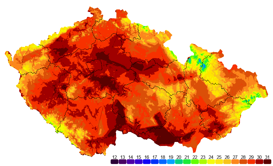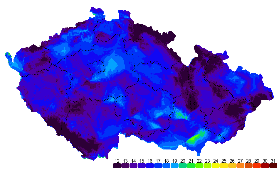 | Hejnice | 28.5 °C | 13.1 °C | - | 19 mm | 0 cm | 11 hod |
