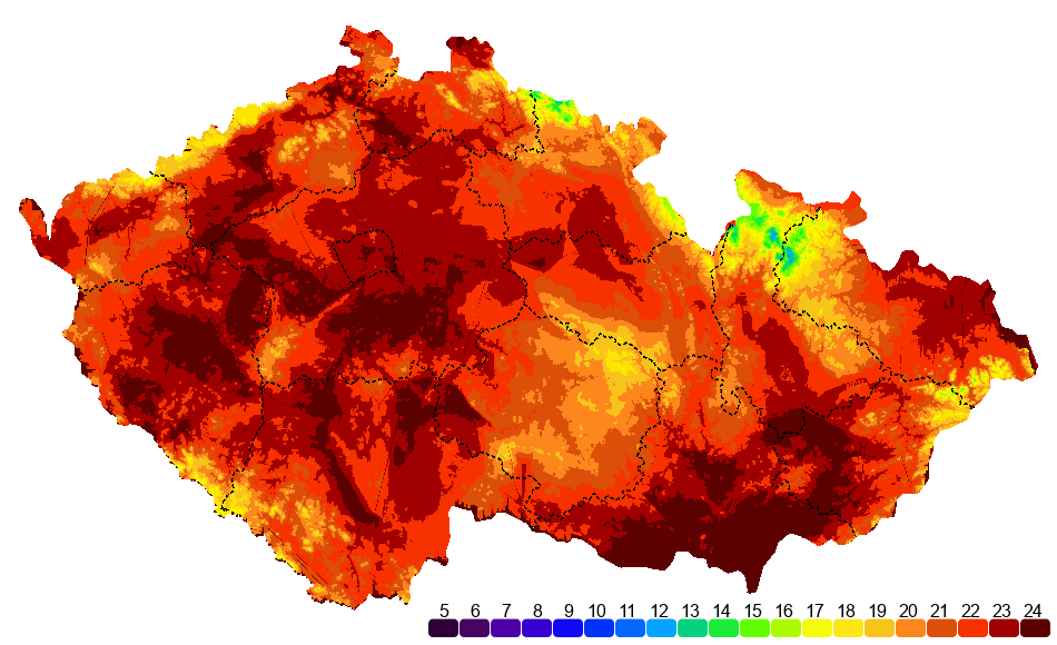 | Žďár nad Sázavou | 22.1 °C | 10.2 °C | - | - | - | 83 % |