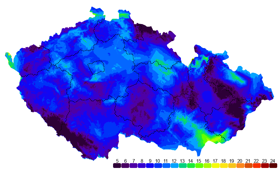 | Dukovany | 21.5 °C | 10.4 °C | - | 0 mm | 0 cm | 9.1 hod |