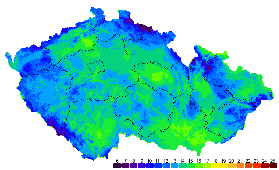 | Dyjákovice | 25.8 °C | 11.4 °C | - | 0.6 mm | - | 3.9 hod |