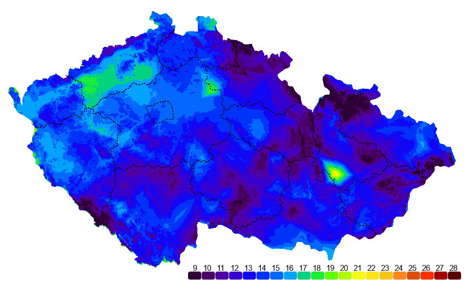 | Frenštát pod Radhoštěm | 25 °C | 8.5 °C | - | 5.2 mm | - | 10 hod |