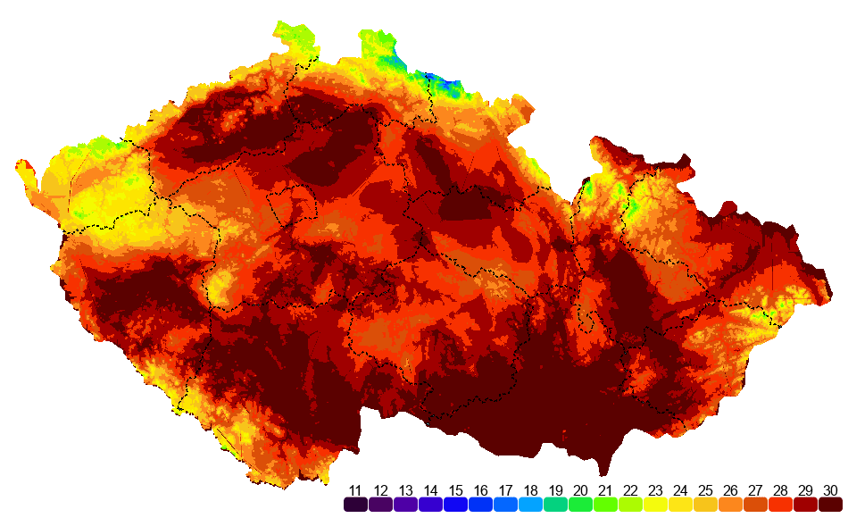 | Ústí nad Orlicí | 29.1 °C | 11 °C | - | 0 mm | 0 cm | 8.7 hod |