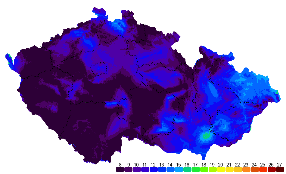 | Děčín | 25.3 °C | 8.8 °C | - | 0.1 mm | 0 cm | - |