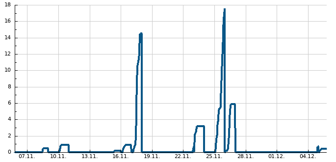 | Nejvyšší průměrná rychlost větru | 10.11.1921 | 24 km/h |