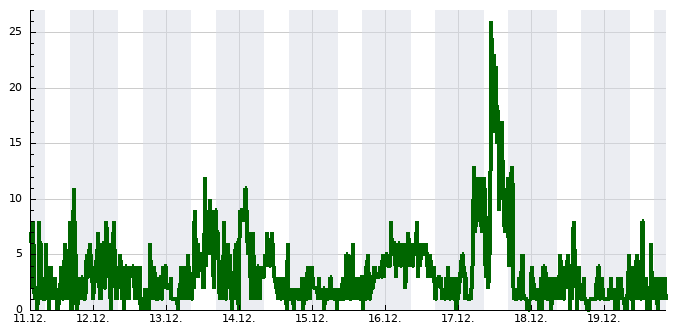 | 23:50 18.12.2025 | -2.6 °C | JV, 1 km/h Náraz: 6 km/h | 94 % | 0 mm |