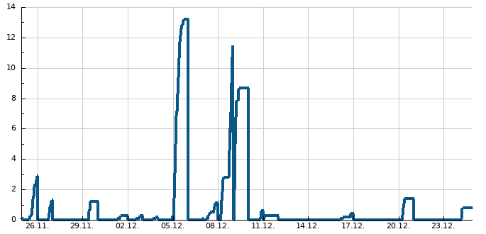 | Nejvyšší srážky | 21.12.2023 | 90 mm |