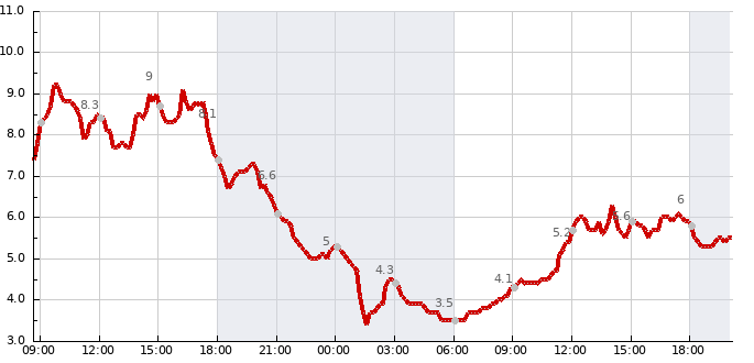 | 02:00 | 8.5 °C | 87 % | 0 mm |