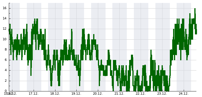 | 11:50 | -0.4 °C | SV, 13 km/h Náraz: 29 km/h | 68 % | 0 mm |