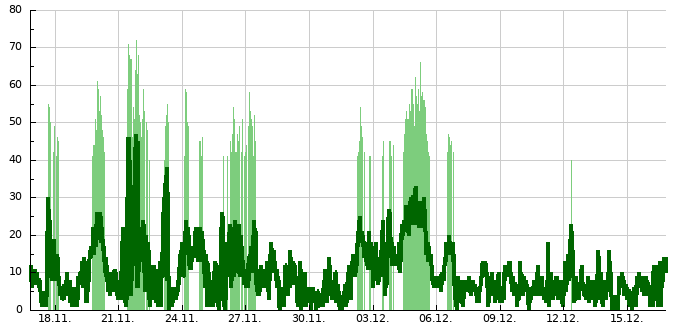 | Nejvyšší průměrná rychlost větru | 01.02.2014 | 21 km/h |