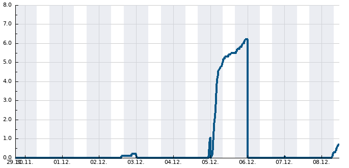 | Nejvyšší průměrná rychlost větru | 29.10.2017 | 12 km/h |