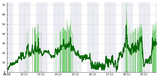 | Max. teplota | Min. teplota | Náraz větru | Srážky | Sněhová pokrývka |