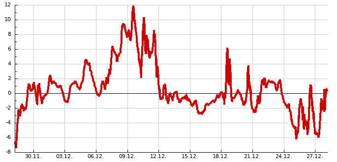 Nejvyšší průměrná rychlost větru 24.01.1993 14 km/h
