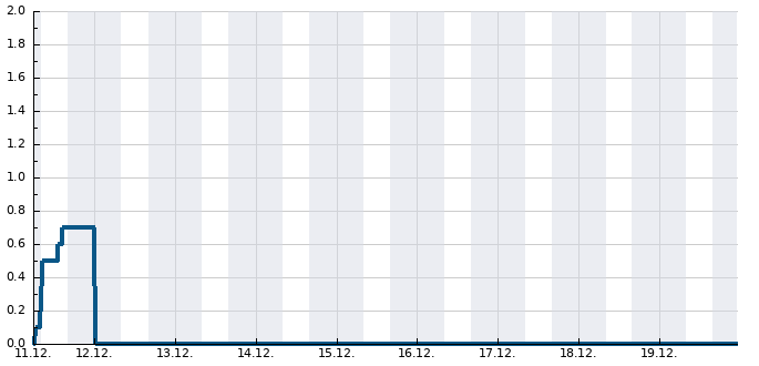 | 4.1 °C | -2.4 °C | 2.6 mm | 12 cm |