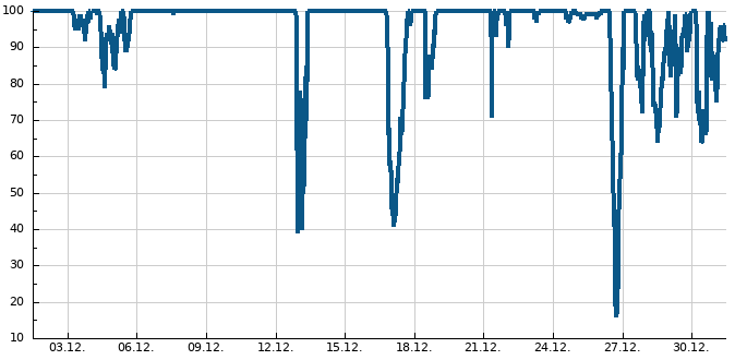 | Nejvyšší průměrná rychlost větru | 25.12.2013 | 14 km/h |