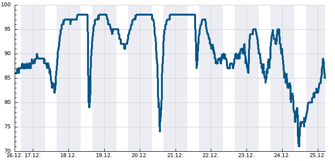 | Nejvyšší průměrná rychlost větru | 18.01.2007 | 14 km/h |