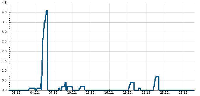 Graf zobrazuje denní srážkové úhrny v průběhu měsíce.