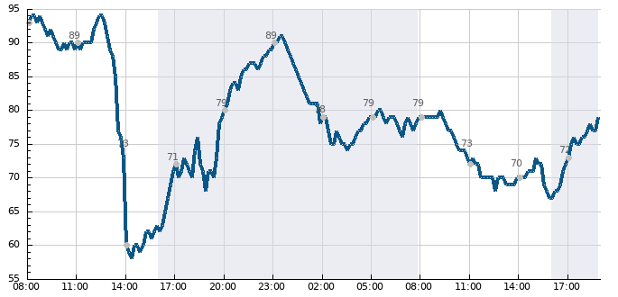 - Nejvyšší teplota (23:50)
