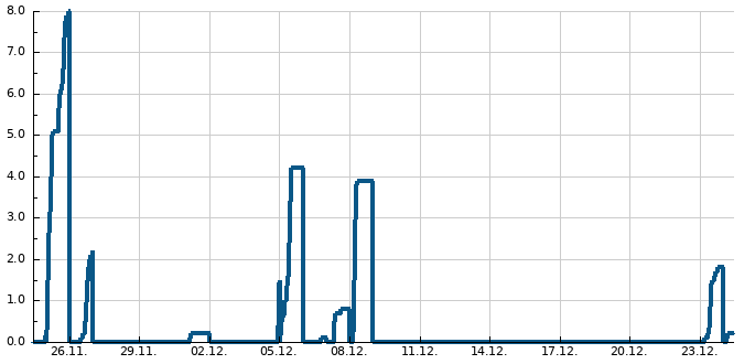 | Max. teplota | Min. teplota | Náraz větru | Srážky | Sněhová pokrývka |